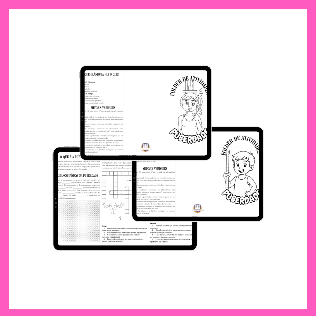 Material pensado para trabalhar a puberdade de forma clara, respeitosa e acessível com os estudantes. O folder traz atividades dinâmicas sobre o funcionamento das glândulas, o papel das gônadas e as mudanças físicas que ocorrem nessa fase, facilitando a compreensão do conteúdo de maneira prática.